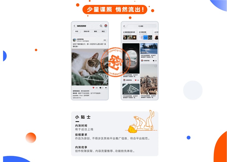 官方表示,QQ的WeZone功能將于近期內測,投稿作品要求為原創,內測可優先享受創作權限、內容流量推薦、功能搶先體驗。