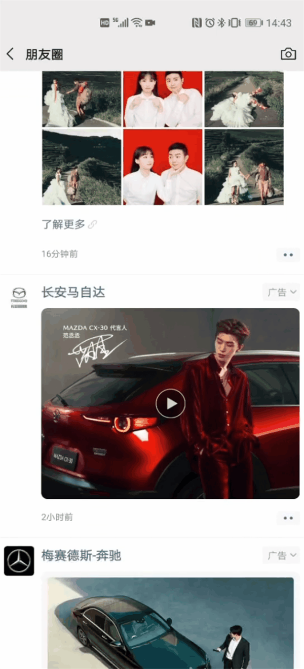 5月31日下午,我和往常一樣打開微信朋友圈,開始刷到幾條廣告還未發現異常,畢竟偶爾刷到朋友圈廣告早已習以為常。可繼續往下翻才發現,我的整個朋友圈都變成了“廣告圈”!如下圖,以往我朋友圈出現過的廣告都一股腦全部涌出來了,中間完全沒有“插播”一條真正的朋友圈。不過,在我繼續往下滑屏的過程中,朋友圈又變回了正常狀態。