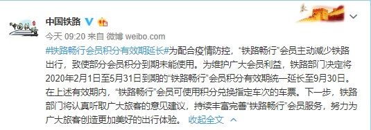 了解到,此次延長措施主要面向2020年2月1日至5月31日到期的“鐵路暢行”會員,其積分有效期將被統一延長至9月30日。
