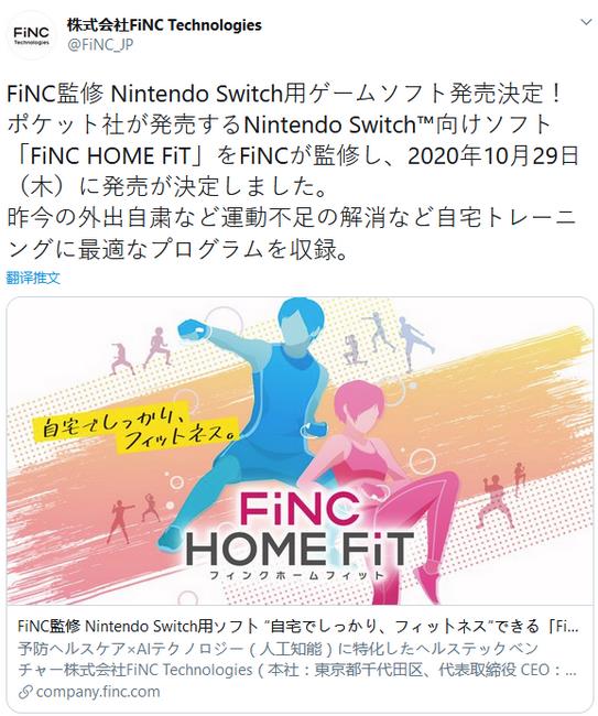 任天堂Switch平臺全新健身游戲《FiNCHOMEFiT》將于2020年10月29日發(fā)售,游戲售價5500日元(不含稅)。