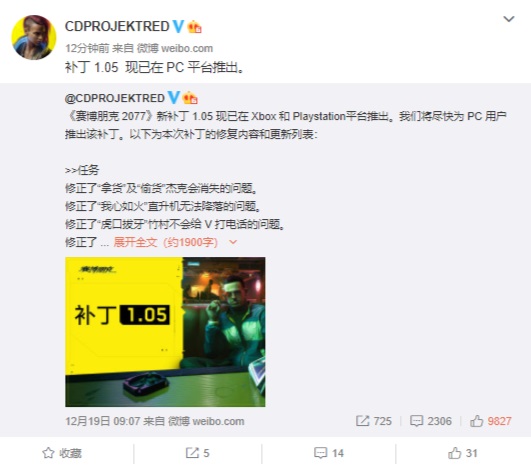 昨日,《賽博朋克 2077》發(fā)布了 1.05 版本的更新補(bǔ)丁,修復(fù)大量 bug 并提高穩(wěn)定性。CDPROJEKTRED 表示,該版本現(xiàn)已在 PC 全平臺推出。