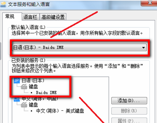 1、如果想要設置新的內容可以在下方設置,想要變為原來的輸入法只要將日文輸入法刪除,選擇原來的即可