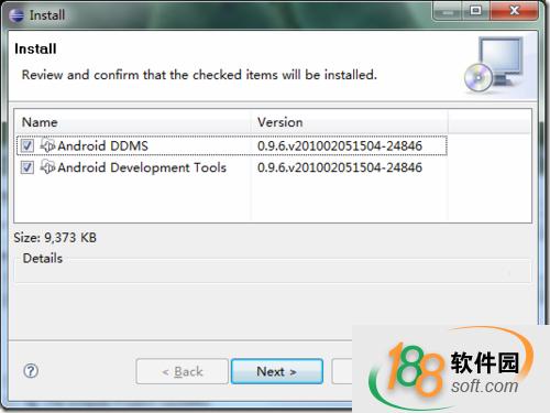 勾選 "Android DDMS" 和 "Android Development Tools" ,"Install" 如下圖所示: