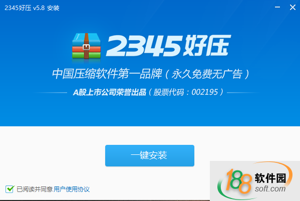 1、在188件園下載最新版的2345好壓安裝包,解壓縮后雙擊運行安裝程序。