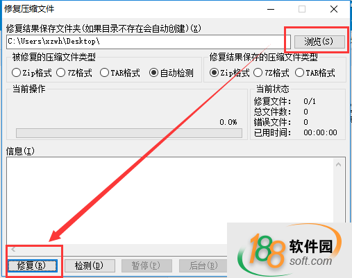3、修復頁面,可以選擇修復結果的存儲位置,然后點擊【修復】,就可以修復損壞的文件了。如果文件本身有問題,那也有可能就修復不了的。