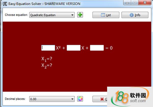 方程式計算軟件(Easy Equation Solver)是一款方程式求解軟件,它能解決數學方程的問題,不包括任何類型的廣告軟件或類似的惡意組件,188軟件提供“方程式計算軟件(Easy Equation Solver)”免費下載,需要的小伙伴快點擊下載使用。