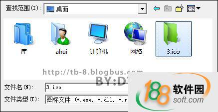 10、 你選擇圖標文件,找到你要替換的圖標文件后(ico)選中,點擊對話框右下角的 "打開(0)"
