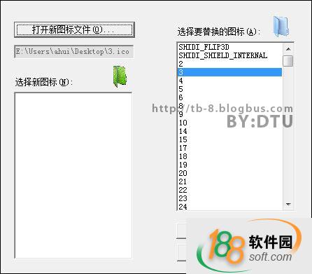 9、彈出了個對話框(替換圖標與.........),讓你選擇你要替換的圖標(ico文件),點擊左上角的"打開新圖標文件(0)..."