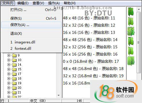 2、點擊菜單欄上的"文件(F)", 選擇第一項"打開(O)" 然后就顯示,選擇你要編輯的dll文件(此教程dtu就以 imageres.dll 來做示范)
