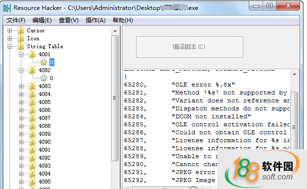 1、在188軟件園下載ResHacker,然后打開"ResHacker.exe"(程序);