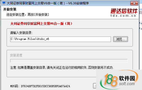 1、在188軟件園下載大同證券V6下載,下載完成后解壓軟件包,雙擊“dt_v6_sp_pc.exe”;