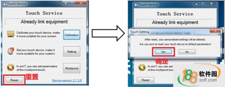 2、如果觸摸正常,請打開TouchService軟件,重置觸摸。