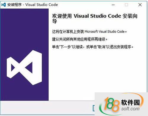 1、雙擊下載的Visual Studio Code安裝包,進入安裝向導界面;點擊下一步