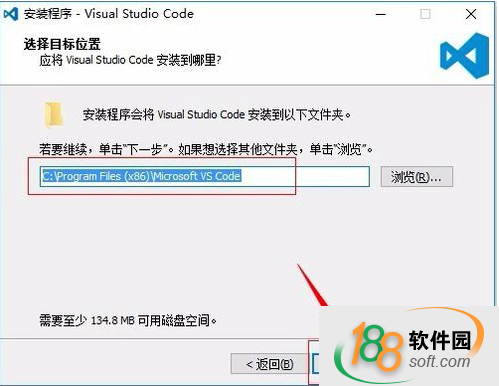 3、選擇Visual Studio Code位置,就是你想把軟件安裝在哪個目錄;選擇合適的目錄后繼續點擊下一步