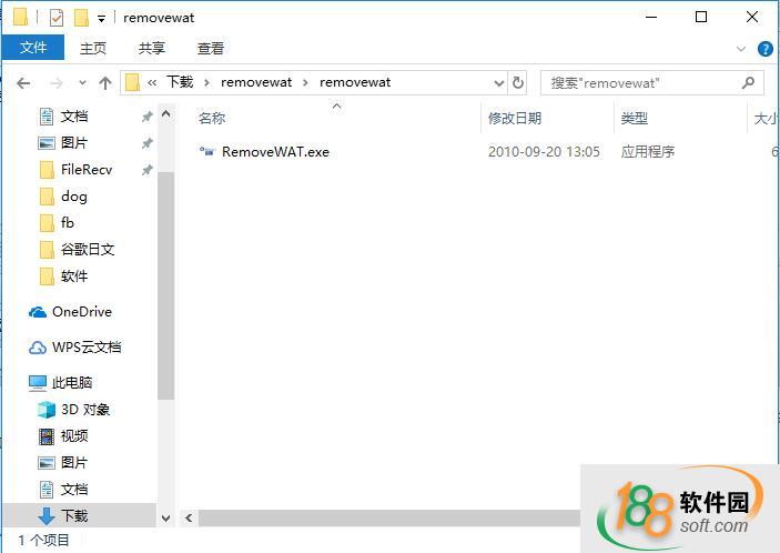 2、解壓縮后,找到目標文件夾,直接雙擊打開“RemoveWAT.exe”即可開始使用