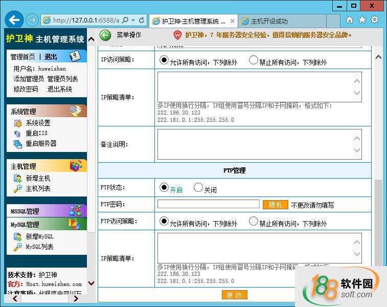 護衛神.主機管理系統 是一套為方便廣大用戶管理服務器而開發的軟件,支持開設主機、SQL Server2000/2005、MySQL。