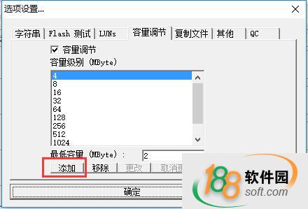 (3)請選擇“容量調(diào)節(jié)”,在這里選擇你的 U 盤的容量;如果在這里沒有你所要的容量,請單擊“添加”,填寫你所需的容量。