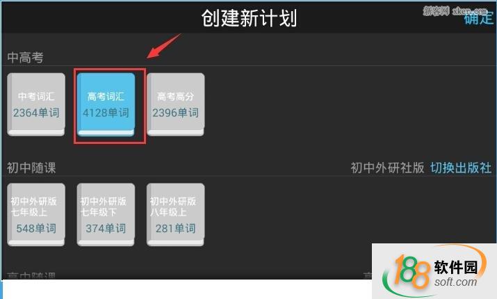 2、登陸成功后選擇你需要背的詞匯內(nèi)容后點確定(主要包括初中及高中全部詞匯);