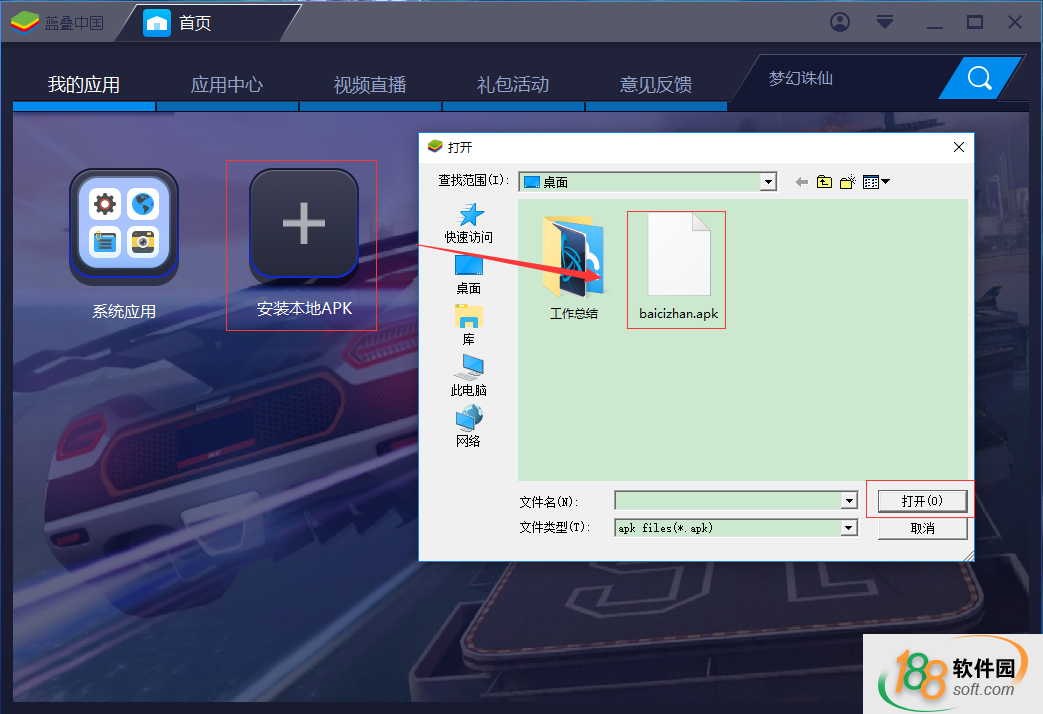 2、安裝成功以后,打開模擬器,點擊安裝本地apk。