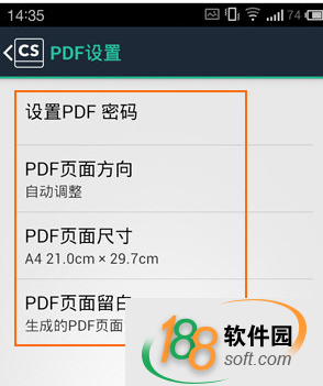 二:在PDF設置中,用戶可以對PDF設置密碼、設置PDF的頁面方向、以及PDF的頁面尺寸。