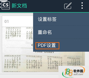 答:一:打開“掃描全能王”,在頂部菜單欄中,選擇“PDF設置”。