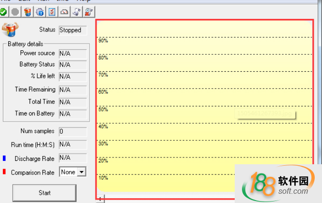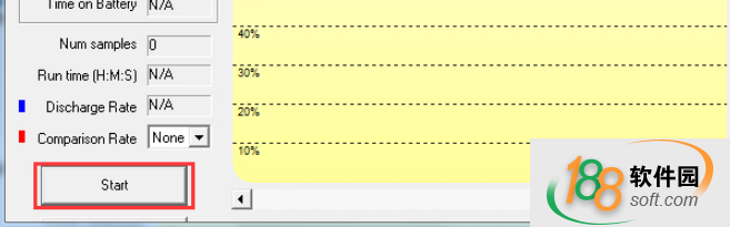 2、在主界面中點擊“開始”按鈕,進行放電測試,其中縱坐標代表當前所剩電池電量百分比,橫坐標表示電池使用時間,在左邊的信息欄的“放電率”中顯示了電池飽和時所能使用的最長時間。