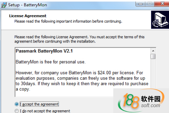 第一步:下載BatteryMon軟件,解壓下載好的軟件包,雙擊運行BatteryMon安裝程序,打開BatteryMon安裝包,選擇接受。
