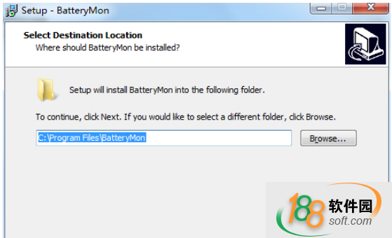 第二步:選擇BatteryMon安裝目錄,點擊【browse】按鈕選擇安裝目錄,點擊【next】;