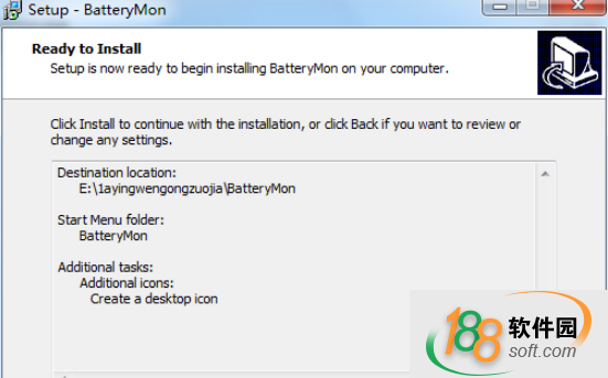 第三步:檢查BatteryMon安裝位置和快捷方式無誤后,單擊【install】開始安裝,等待片刻;