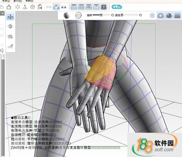 3.點(diǎn)擊操作欄的操縱器(Ctrl+H)按鈕,即可開(kāi)始對(duì)人體進(jìn)行各種調(diào)整。