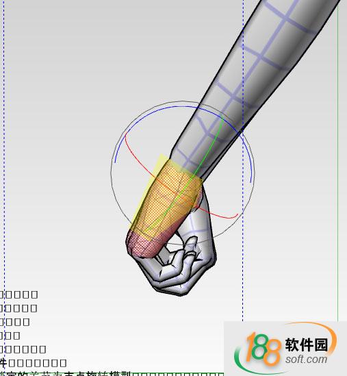 4.例如選中腰部的塊,出現(xiàn)的三色線即為操縱用的旋轉(zhuǎn)軸,鼠標(biāo)左鍵按住沿著圓拖動(dòng)即可按圓的方向旋轉(zhuǎn),