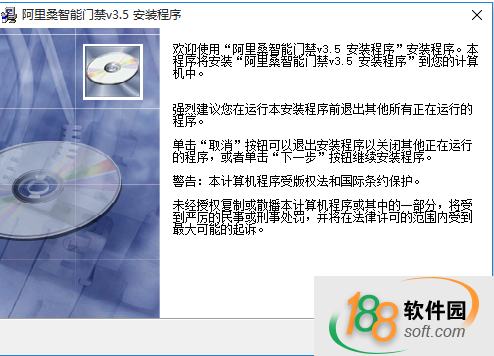 1、在188軟件園下載阿里桑門禁管理系統(tǒng),雙擊安裝文件圖標(biāo),如下圖: