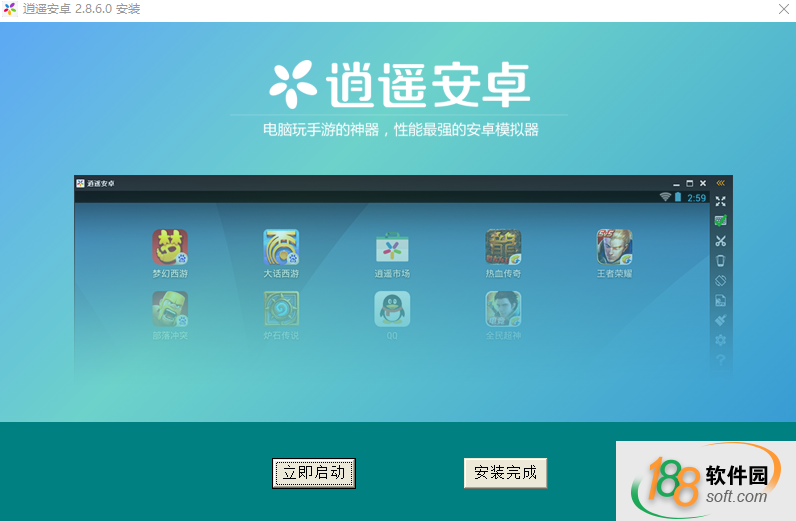 4、逍遙安卓模擬器完裝完成,點(diǎn)擊立即啟動即可使用!