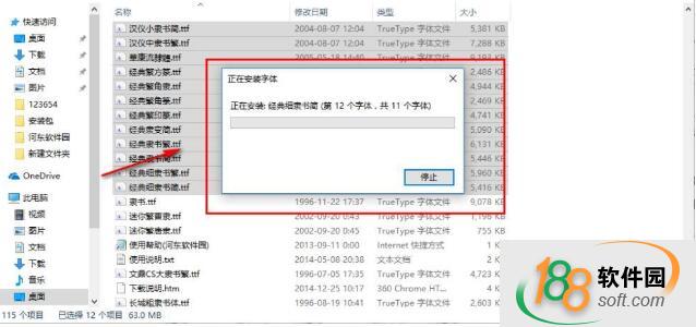 1、打開您下載的字體文件,如果想要查看更多的字體,可以將進度條下拉到中間,然后點擊想要安裝的字體。