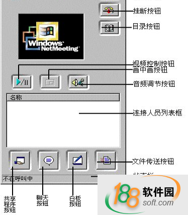 接受呼叫后,連接人員列表里就顯示出當前人員名單,狀態欄也顯示現在的連接狀態(如圖7-13)。這時你可以和呼叫人進行對話,電子白板和應用程序共享了。