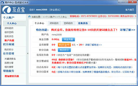 互點寶是一個刷關鍵詞排名、刷百度分享、刷相關搜索的百度點擊軟件,針對搜索引擎前3頁內的關鍵詞快速提升。刷關鍵詞排名,相關搜索的下拉框和百度分享。本站提供互點寶下載。互點寶SEO優化軟件只要有積分,您設置的任務就可以被點擊,獲取積分的方式有掛機或充值購買。軟件能夠支持百度、谷歌、搜搜、搜狗、必應、有道等搜索引擎的自動點擊,幫助網站獲取更好的排名。