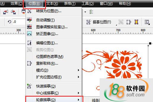 3.左鍵單擊圖片。選擇 位圖-輪廓描摹-高質量圖像。(如果位圖過大,點擊縮小位圖)。