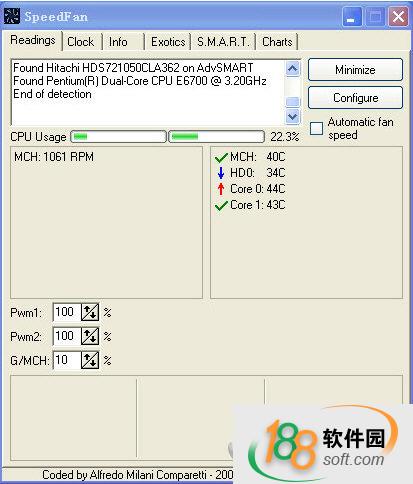 運行speedfan,經過一陣子檢測之后,出現界面