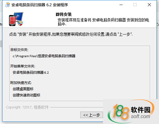 3、選擇恒源安卓電腦條碼掃描器安裝位置