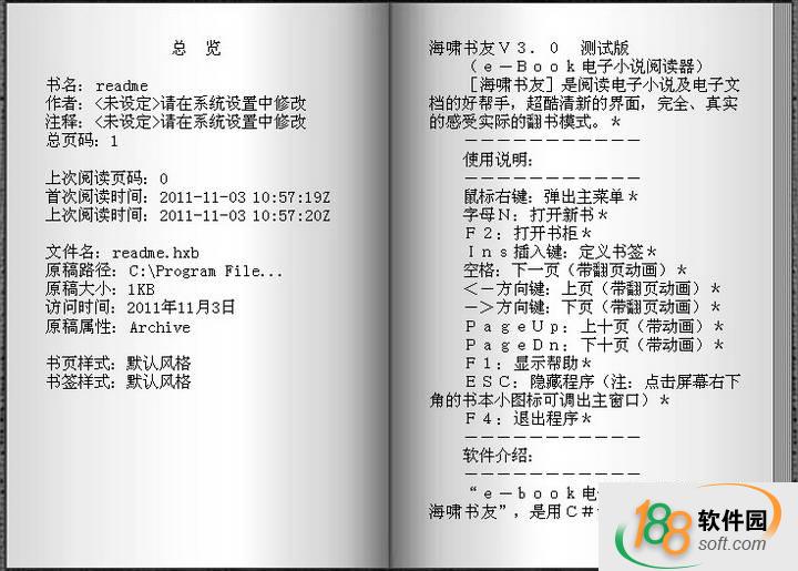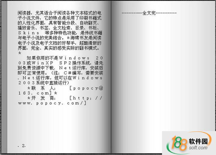 eBOOK是用VC++設計的文本閱讀軟件,適合于閱讀文本格式的電子小說,它的特點是采用了書籍式的人性化界面,是傳統書籍與電子小說的完美結合。eBOOK啟動以后,你將在屏幕上看到一個象書一樣的窗口。這本書的外觀是根據真書而設計出來的,比如它的長寬比、四周留白、行距等。eBOOK不僅在外觀上跟書很像,連使用方法也幾乎一樣,雖然我們不能真的用手去翻看,但我們可以借助鼠標來完成,當然,也可以用鍵盤來操作。