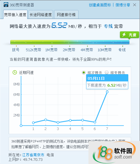 一、從188軟件園下載最新版的360寬帶測速器,雙擊安裝。