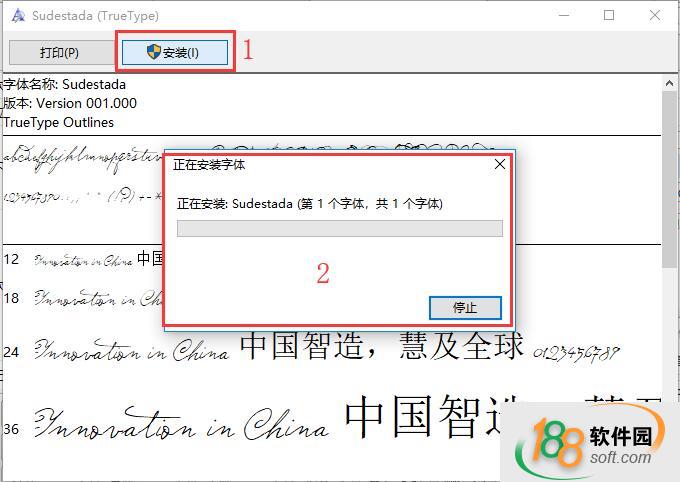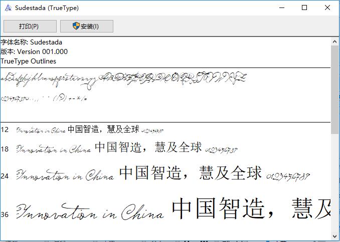 1、打開Sudestada簽名字體文件,點擊左上方的“安裝”