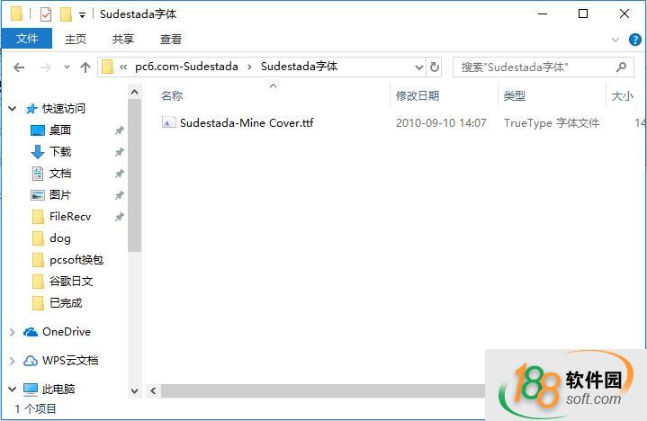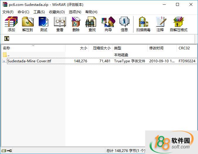 1、從188軟件園下載Sudestada簽名字體壓縮包