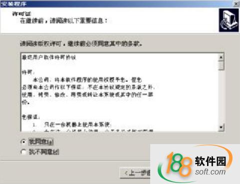 3、在隨后出現(xiàn)的安裝程序窗口中彈出最終用戶軟件許可協(xié)議對(duì)話框,如下圖所示。選擇【我同意】選項(xiàng),單擊【下一步】按鈕。