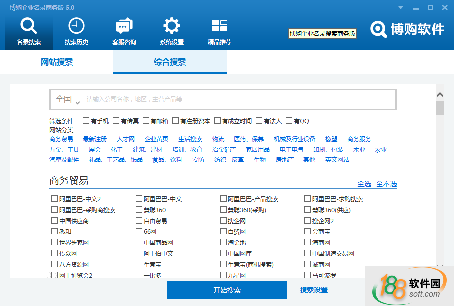 博購企業名錄搜索軟件商務版是一款找客戶的營銷工具,可以快速準確的從收錄的600多大型的商務和行業網站,幫助大家快速,準確的從收錄的網站中實時搜索到最新的公司信息。博購企業名錄搜索軟件商務版支持 3000多個縣級市和7000多個行業的選擇,是銷售人員找客戶的好幫手。
