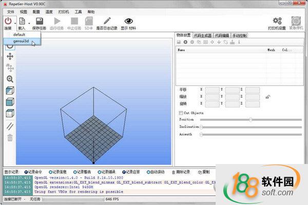 4、在左上角連接下拉條中選擇"gensui3d"打印機,如果提示COM口不正確,請選擇安裝驅動時查COM口