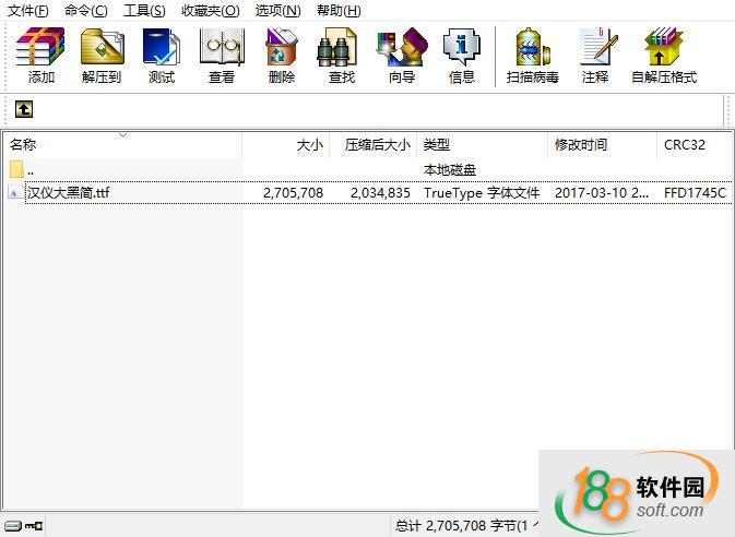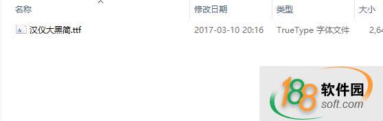 1、從188軟件園下載漢儀大黑簡字體壓縮包