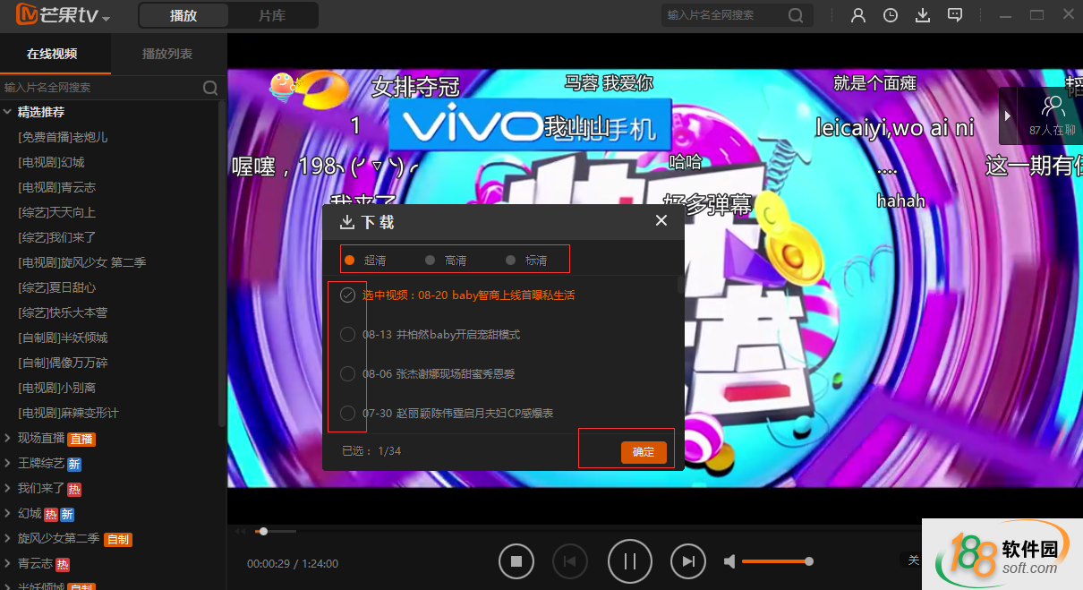 2.然后再選擇要下載的期數以及清楚程度(有超清、高清、標清),最后點確定即可。