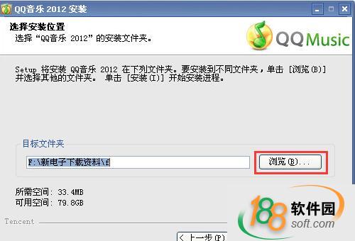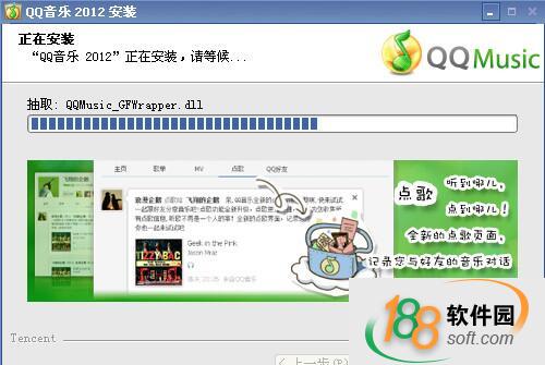 1、從188軟件園下載QQ音樂2012安裝包,雙擊打開安裝程序,點擊“下一步”