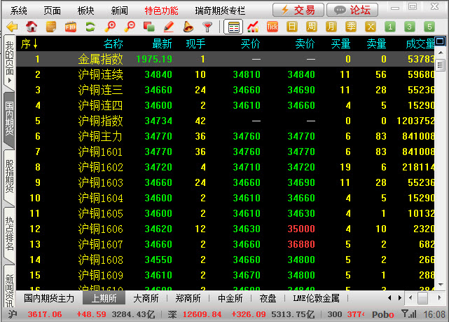 行情軟件嵌套閃電手交易終端,支持止盈止損;條件單;盤前下單;自動填入激活品種,默認手數,當前價;直接點擊6個方向按鈕委托下單;同一界面的持倉,委托,可撤報告和動態盈虧。